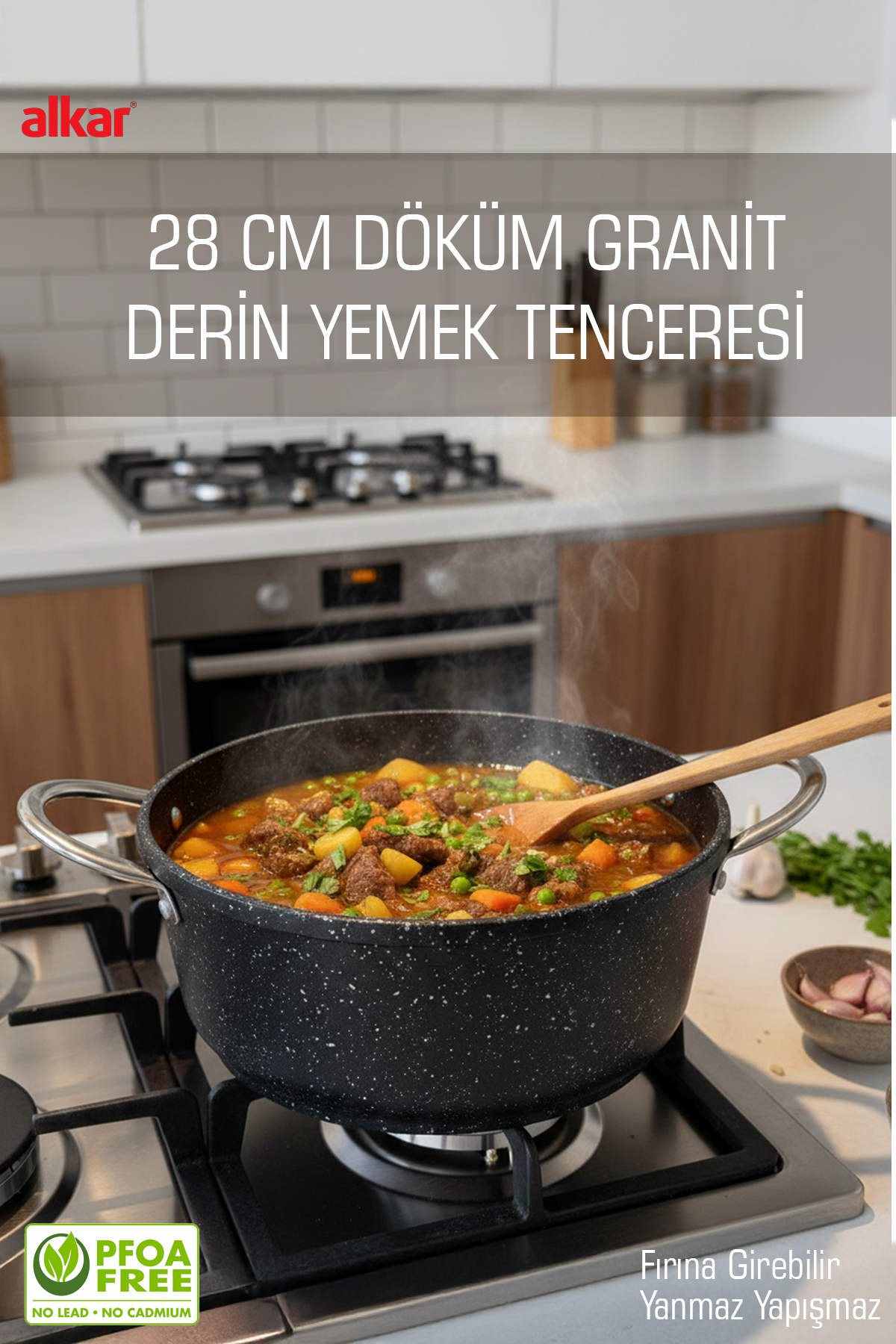 24-28-30 Cm Döküm Granit Yanmaz Yapışmaz Fırına Girebilir Küçük Büyük Orta Boy Pilav Tenceresi